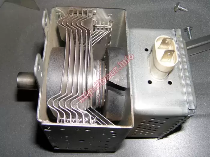 Panasonic NN-ST556W - это инверторная микроволновая печь с наличием гриля и турборазморозки. Ее мощность 1100 Вт, а объем составляет 27 литров. Устройство наделено большим поворотным столом, темным жаропрочным внутренним покрытием, сенсорной системой управления, пошаговым дисплеем. У нее нет нагрева в СВЧ, кроме того, устройство отключается, проработав всего 20 секунд. По этой причине требуется срочный ремонт микроволновых печей в нашем сервисном центре. Состояние этой бытовой техники удовлетворительное, это стало понятно после предварительного осмотра. Корпус грязный и не аккуратный, пленочная клавиатура в нескольких местах сильно повреждена (отлично видно на фото № 1), смотровое окно в пятнах и потеках. Кроме того, слюда очень сильно потемнела, магнетрон потерял эмиссию, на магнетроне лопнул магнит - 2M261-M32 JP. Для выполнения ремонта микроволновых печей ее пришлось практически полностью разбирать (см. фото № 2 и 3). Восстановлена работоспособность ВВ цепей, в которых возникли проблемы. Заменена новая слюдяная пластина 125-80мм. Поскольку магнетрон 2M261-M32 ремонту не подлежал, он также был заменен нановый. Теперь эта микроволновая печь с сенсорным управлением и LED экраном полностью рабочая. В дальнейшем - ухаживать!