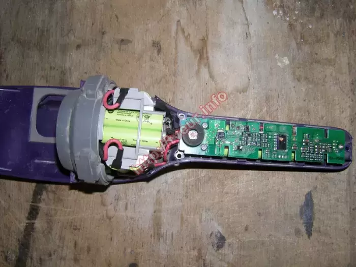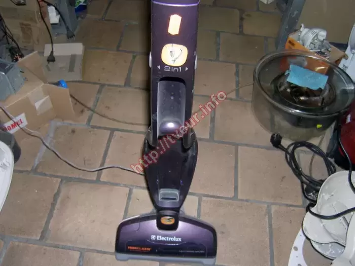 Электровеник/аккумуляторный пылесос ElectroLux ZB 2932 (аналогичная модель Electrolux ZB 2935) начинает отключаться, проработав всего 3 минуты. Пользователь, который принес его в наш сервисный центр попросил, чтобы был сделан ремонт пылесосов, а также заменены аккумуляторы. В устройстве применена уникальная в своем роде технология самоочистки. С помощью простого нажатия на педаль, миниатюрное лезвие измельчит намотанные на роликовую щетку нитки, волосы или шерсть, освобождая тем самым ее от мусора, который попадает в пылесборник, объем которого 05 литра. Этим портативным беспроводным пылесосом можно легко выполнить уборку салона автомобиля, дивана или кресел, для этого нужно его отсоединить, нажав кнопку, которая расположена сбоку на трости. Пылесос поступил запыленный и грязный. Но чтобы точно определить причину, которая спровоцировала такую неисправность, нужна предварительная диагностика. Она показала, что проблема возникла в батарейном отсеке. Исходя из этого ремонт пылесосов состоял в чистке, переупаковке и замене аккумуляторов ni-mg АА 1.2В * 1300мА/ч в количестве десяти штук. После выполненного ремонта использовать электровеник строго по назначению, не убирать ним никакой строймусор, поскольку, если из строя выйдет двигатель, отремонтировать его будет крайне сложно, а замена станет не рентабельной. Кроме того, три первых цикла- полный разряд-полный заряд аккумуляторов, придерживаясь данного правила, аккумуляторы прослужат значительно дольше.