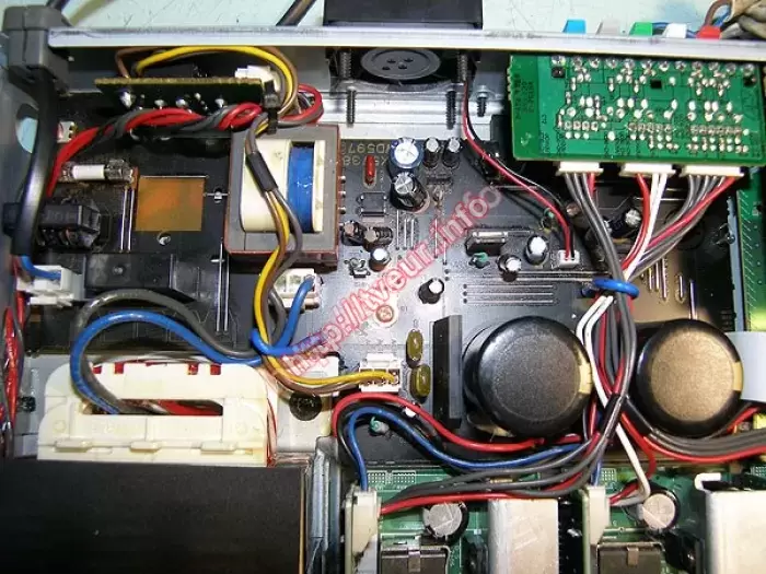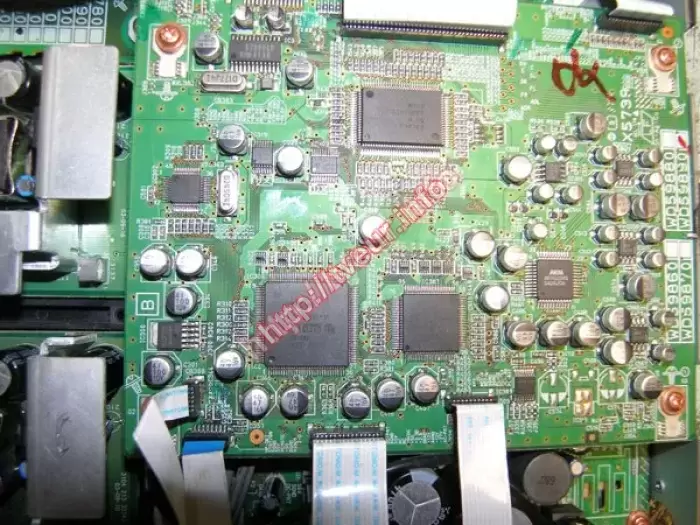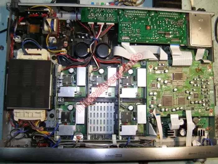 Модель домашнего кинотеатра 5.1 - Yamaha RX-SL80 мощностью 100 Вт (на канал) и наличием радиотюнера AM/FM, поступила в наш сервис с проблемой - отключается в защиту через 3 сек. После осмотра выяснили, что устройство ранее уже вскрывалось, видны следы попадания воды на платах. Поскольку из строя вышли модули УНЧ и защиты, ремонт домашних кинотеатров состоял в их восстановлении. Выполнена отмывка плат от следов воды, заменено много разных деталей, включая 2 штуки R SMD и КТС 114. Во избежание ремонта в дальнейшем - не допускать попадания влаги внутрь!