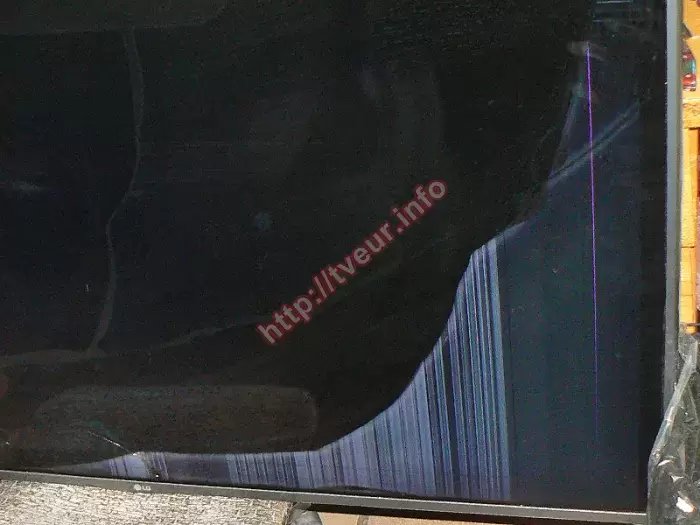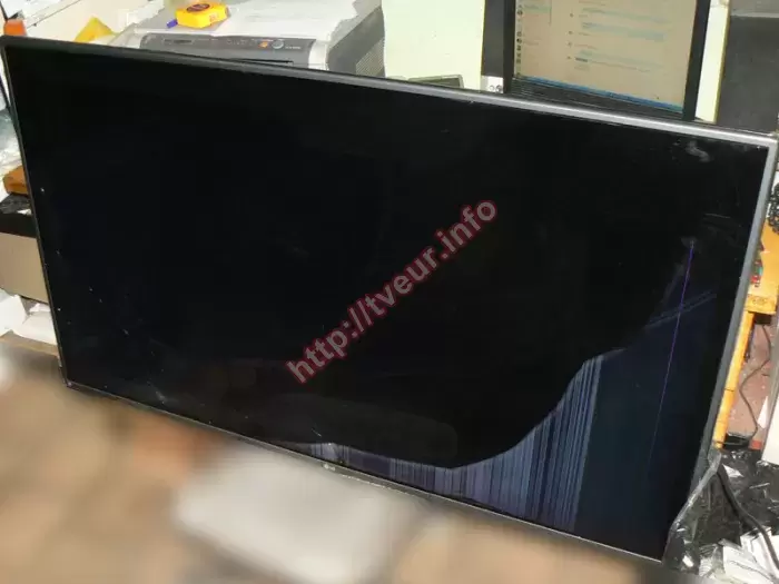 Поступил в ремонт LED телевизор LG 55LF592V, у которого после падения очень сильно повреждена большая 55-дюймовая матрица. Пользователь узнав, что возможна замена матрицы телевизоров обратился за помощью и рассказал на приемке, что телевизор висел на стене, но крепление не выдержало и он упал вниз. В результате на экране появились трещины и пятна разных размеров и формы. Вероятнее всего в этих местах произошло отслоение матрицы, что характерно для такого типа неисправности. Возле нижней рамки сетка из мелких трещин, а в правом нижнем углу, который светлее всего остального экрана, многочисленные вертикальные столбцы. Правее логотипа LG немного повреждена рамка, на ней видны царапины. Данная модель, 2016 года выпуска, наделена самыми современными технологиями и функциями, в число которых входит SmartTV (Операционная Система WebOS 2.0), Wi-Fi, Ethernet и др. Поскольку у ТВ большая диагональ, замена матрицы телевизоров является сложным и кропотливым процессом. Для выполнения такого ремонта, в первую очередь необходимо было заказать новую деталь, учитывая при этом множество нюансов, к примеру, модель или версию. Телевизор полностью разбирали, потом была снята разбитая панель, только потом на ее место установлена новая. Замена выполнялась опытными телемастерами, поскольку одно неверное движение могло бы навсегда вывести дорогостоящую деталь из строя. В данном случае ремонт оказался результативным, после всех надлежащих настроек, изображение на экране отличного качества. Заказчику выдана гарантия, а также дан ряд рекомендаций по дальнейшей эксплуатации этого телевизора.