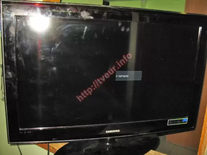 К нам в мастерскую принесли жидкокристаллический LCD телевизор Samsung LE37A615, у которого левая часть экрана до половины - темная, при этом правая часть с нормальным изображением. Как показывает многолетний опыт работы, с такой неисправностью гарантированно потребуется ремонт матрицы телевизора, который будет не простым. Данная модель с 37-дюймовым экраном, разрешение которого 1920 x 1080 пикселей, яркость 500 кд/м2, а динамическая контрастность 35 000:1. Этот телевизор с времем отклика 4 мс и углом обзора 178/178 градусов. В нем используется широкий набор различных функций, включая таймер спящего режима, таймер включения и выключения часов, телетекст (TTXT), автопоиск каналов, картинка в картинке (1 тюнер), автоматическое выключение, автоматическое выравнивание громкости и другие. Пользователь рассказал, что при нажатии, картинка на экране появляется, но она не качественная, с полосами, поэтому смотреть телевизор не возможно. Это четко видно на 1 и 2 фото по заставке "нет сигнала". Кроме того, его уже ремонтировали в другом сервисном центре, но положительного результата это не принесло. Точно определить, что возможен ремонт матрицы телевизора, а не ее замена, которая будет в разы дороже, помогла диагностика, с помощью которой была определена неисправность. В результате пришлось поменять некоторые элементы матрицы, для чего полностью разбирался/собирался телевизор. Такие восстановительные работы выполнялись с использованием современной специальной оснастки. В конечном итоге ЖК телевизор показывает отлично.