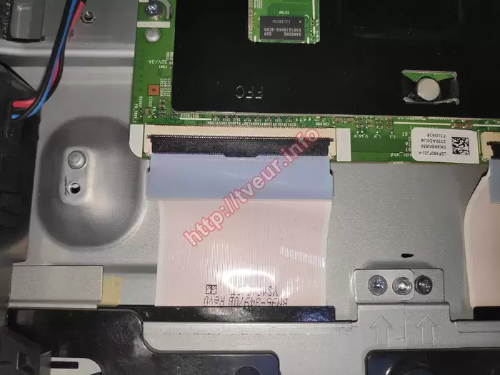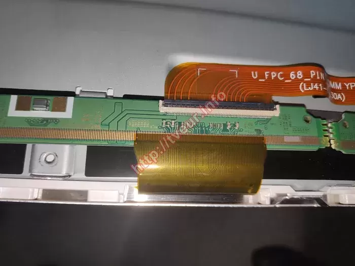 Телевизор в целом в хорошем внешнем состоянии, однако на корпусной рамке было зафиксировано множество мелких царапин, свидетельствующих о длительной эксплуатации. При подключении к сети устройство вовсе не включалось, поэтому было принято решение выполнить полную разборку для тщательной диагностики. В процессе разборки специалисты установили, что данная модель оснащена следующими оригинальными компонентами: T-CON плата E88441, матрица CY-XJ048FLLV4H, шлейф U_FPC_68_PIN_80MM YP1512 (LJ41-13430A), а также межплатные соединительные шлейфы BN96-34970B и BN96-36243S. Перед тем как приступить к такому процессу, как ремонт ЖК ТВ Самсунг, была выполнена углубленная техническая диагностика, которая позволила точно локализовать источник неисправности. В данном случае выявлены серьезные повреждения в цепях питания и линиях передачи данных LVDS, что делает ремонт более трудоемким и требует внимательного подхода к восстановлению компонентов.