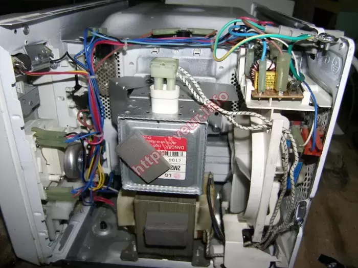 В микроволновой печи LG MS-1929G без гриля нет нагрева в СВЧ. До нас эту бытовую технику вскрывали, пытались ремонтировать, в результате вынули гасящий резистор, проблема осталась не решенной. Мы всегда осуществляем ремонт микроволновых печей, если считаем, что он будет рентабельным. Также заказчик попросил, чтобы все работы по восстановлению были выполнены в срочном порядке. Осмотрев визуально устройство стало понятно, что отсутствует куплер, также сгорела обмотка сетевого реле, сетевой шнур самостоятельно удлиняли (смотки). Данная обычная (соло) модель с механическим управлением, наделена мощностью 700 Вт и объемом духовки 19 литров. У нее нет гриля, при этом ее особенностью является использование технологии I-Wave. Это значит, что микроволны в микроволновой печи распространяются по спирали, тем самым гарантируя максимально равномерное и глубокое проникновение тепла, причем не только по центру, но по краям блюда. Чтобы ремонт микроволновых печей был осуществлен на должном уровне, мы всегда выполняем предварительную диагностику, с помощью которой установлено, что проблема в сетевых цепях, панели управления, соответственно данные узла подлежали восстановлению. Пришлось менять многие компоненты, включая гасящий резистор 20вт 30ом, сетевое реле CHP11-A240S, а также термопредохранитель 15а 250в. Как и просил заказчик, ремонт выполнен в самые короткие сроки. В дальнейшем не заниматься самостоятельным ремонтом, периодически ухаживать, проветривать после приготовления.