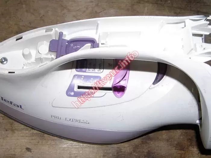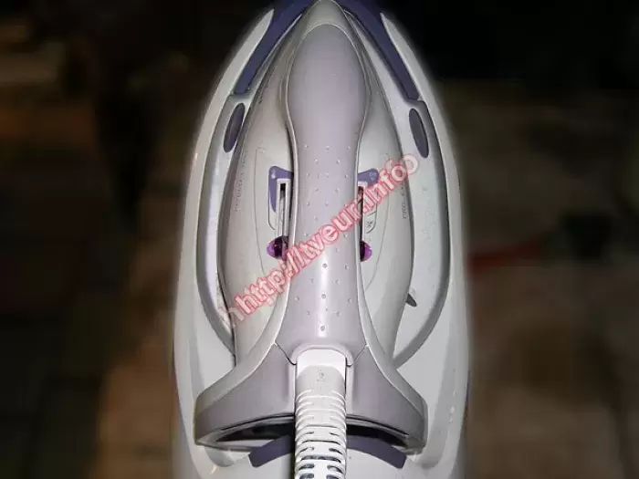 К нам принесли утюг с парогенератором Tefal GV8120, мощность которого 2200 Вт. Эта современная модель наделена автоматической намоткой шнура, мощностью подачи пара до 110 г/мин. Заявленная неисправность - нет нагрева, в целом состояние устройства хорошее, только видны следы нагара на подошве, это стало ясно после предварительного осмотра. В данном случае ремонт утюгов состоял в восстановлении и чистке подошвы, других профилактических работах. После такого ремонта пар подается хорошо. Пользователю дан совет не использовать воду из под крана, лучше фильтрованную.