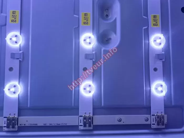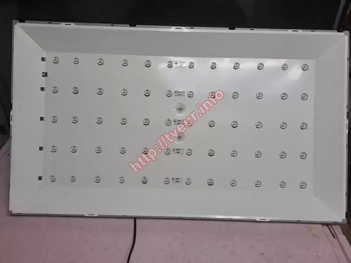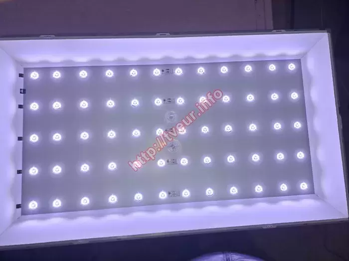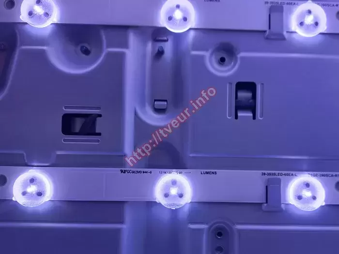 Прежде, чем выполнять ремонт подсветки телевизора Самсунг в Киеве необходимо точно определить, что проблема именно в ней. Телевизор полностью разобрали и узнали, что в нем используется матрица DE390BGM-C1. Подсветка данной модели насчитывает 5 планок, каждая из них разделена на две отдельные планки и соединена разъемом. В общей сложности на планках напаяно 60 светодиодов. В ходе выполненной диагностики выяснили, что проблема возникла в подсветке матрицы, а тестирование всех без исключения светодиодов показало, что два из них перегорели. Именно это стало причиной возникновения вышеописанной неисправности. Также выяснили, что проблема в блоке питания подсветки.