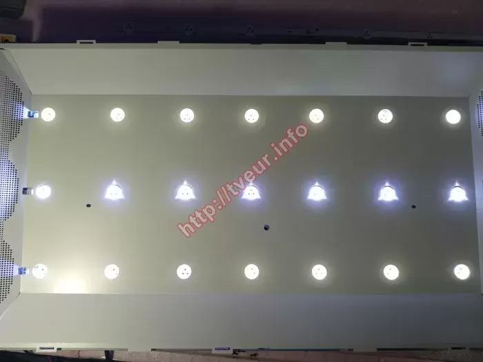 Чтобы точно узнать, нужен ли будет ремонт, а также как его правильно выполнить, потребовалась диагностика неисправности телевизора. В первую очередь телевизор разобрали и узнали, что в нем используется блок питания E247691. LED подсветка в данной модели насчитывает 3 линейки (стринги), на каждой из который находится по 7 светодиодов. Выполненная диагностика подтвердила предположения заказчика, что проблема именно в подсветке. Как оказалось, из строя вышли фонарь матрицы и модуль питания (PSU). Следующий этап - тестирование всех без исключения светодиодов. Результат - на средней планке сгорел один светодиод, потому требуется его замена. Кроме того, в ходе диагностики неисправности телевизора выяснили, что также необходимо поменять верхнюю планку подсветки, которая не подлежит восстановлению. Результаты выполненных работ и ориентировочную стоимость дальнейшего ремонта сообщили клиенту, который решил, что ремонт все же выгоднее приобретения нового телевизора, потому дал согласие на его выполнение.