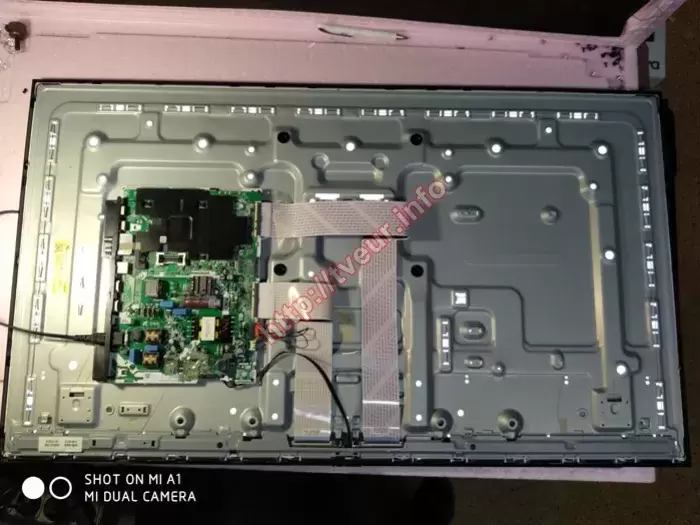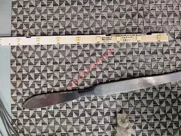 Когда телевизор включили непосредственно в мастерской, левая сторона экрана была сильно затемнена (не было подсветки), на остальной части изображение присутствовало. После разборки телевизора и проведенной углубленной диагностики стало понятно, что ремонт подсветки телевизора Samsung максимально актуальный, поскольку неисправна планка подсветки AOT_43_NU7100F_2X28_3030C.