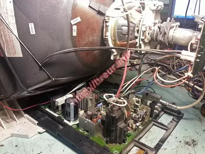В устаревшем кинескопном телевизоре Toshiba 21CSZ3R1U (Flat) нет звука, с такой неисправностью он поступил в наш сервисный центр. Благодаря проведенной диагностике стало ясно, что из строя вышел модуль предусилителя УНЧ, поэтому ремонт телевизоров состоял в восстановлении данного модуля, что выполнить в домашних условиях практически не возможно, так как для этого требуется специальное оборудование. Также потребовалась замена некоторых пассивных элементов, включая такие, как 2SA 1586 (PNP, SMD). После выполненного ремонта, звучание в телевизоре появилось, он функционирует хорошо.
