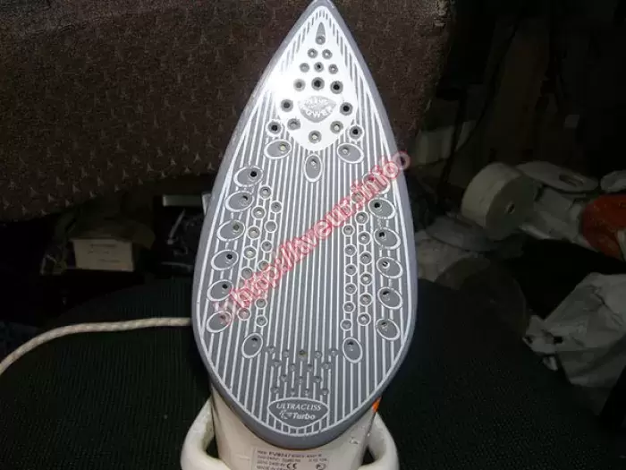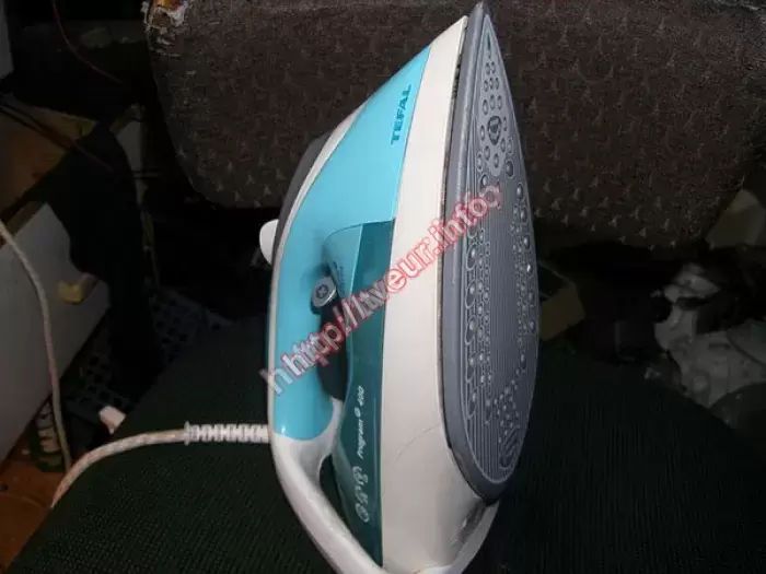 Tefal FV 9247 - это утюг с мощностью 2400 Вт, объемом резервуара для воды 350 мл и автоматическим отключением. Он не греет, с такой проблемой обратились к нам за помощью. Осмотрев устройство стало понятно, что его уже ремонтировали до нас, подошву покрывали термосиликоном, между клеммами термостата попал и пригорел мусор. Поскольку проблема в подошве, ремонт утюгов состоял в ее восстановлении. Кроме того, выполнена реставрация термостата, профилактика. Во избежание ремонта в дальнейшем, пользователю рекомендовано использовать только фильтрованную воду.