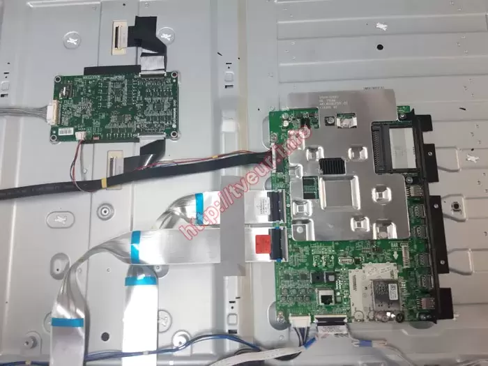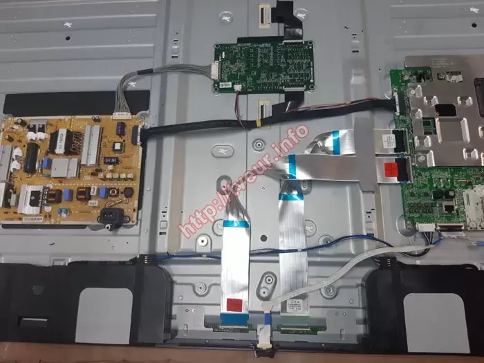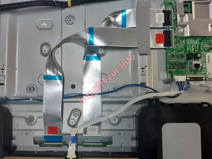 При поступлении в сервисный центр телевизор не проявлял признаков включения, светодиод дежурного режима не загорался. Для выявления точной причины неисправности и определения путей выполнения ремонта LED телевизоров потребовалось проведение глубокой диагностики. Специалист аккуратно снял заднюю крышку устройства, зафиксированную винтами с защитными фиксаторами по контуру корпуса, чтобы получить доступ к внутренним компонентам. После вскрытия стало ясно, что конструкция этой модели включает важные элементы, такие как управляющая плата LJ8 CHASSIS и шлейфы EAD64666207, обеспечивающие связь между электроникой и дисплеем. Диагностика проводилась пошагово: проверялись основные модули - материнская плата, инвертор, блок питания и соединительные цепи. Измерения показали полное отсутствие стабилизированных напряжений на выходе блока питания, что однозначно свидетельствует о его неисправности. Также были обнаружены пробитые диоды, вздувшиеся электролиты и поврежденный транзистор, участвующий в запуске и преобразовании напряжения. Несмотря на количество неисправностей, было установлено, что блок питания подлежит восстановлению, замена всей платы не требуется, поскольку возможен ремонт на компонентном уровне с последующей заменой вышедших из строя элементов.