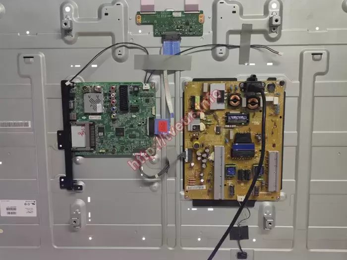 На блоке питания были выпаяны неисправные диоды, несколько вздувшихся конденсаторов, перегоревшие резисторы и стабилизатор напряжения. Вместо них были установлены новые детали с соответствующими параметрами. Также была проверена цепь запуска и выполнена замена ШИМ-контроллера, пострадавшего в результате скачка напряжения. На плате Main Board демонтировали пробитую микросхему питания и несколько обугленных элементов, включая SMD-резисторы и мелкие керамические конденсаторы. После очистки участка от нагара и восстановления дорожек, новые элементы были впаяны на место. Использовались оригинальные или совместимые комплектующие, соответствующие заводским характеристикам. После завершения ремонта телевизора после скачка напряжения и визуального контроля все модули были установлены обратно в корпус телевизора. Устройство собрано в обратной последовательности с проверкой креплений и подключения всех шлейфов. Финальным этапом стало тестирование: телевизор успешно включился, корректно отображал изображение, реагировал на команды с пульта, работали все входы и аудиосистема. Дополнительно была выполнена профилактическая чистка внутренних компонентов от пыли.