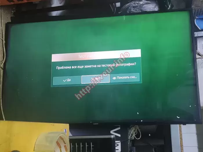 В ходе восстановления модуля питания потребовалась перепайка неисправных радиодеталей. В перечень входят диоды, несколько резисторов и электролитические конденсаторы с различными обрзначениями. Кроме того, пришлось перепаять одну микросхему, которая также оказалась неисправной. Восстановили работу сигнальных цепей, отвечающих за обработку и передачу информации между разными компонентами телевизора. Как результат такой ремонт ЖК ТВ Самсунг в Киеве оказался результативным, он включается, индикация есть. Вместо черного фона на экране проявляется зеленый, что свидетельствует о дефекте матрицы, который нельзя устранить и который не сильно бросается в глаза на обычных сценах.