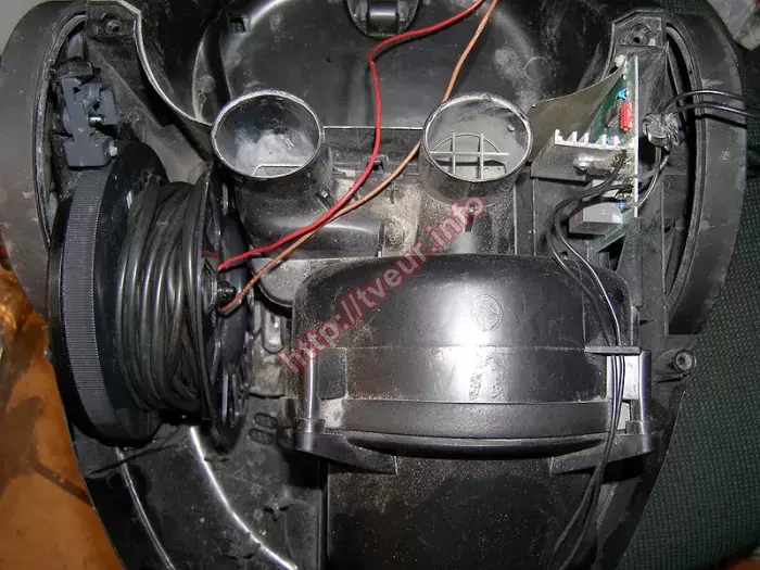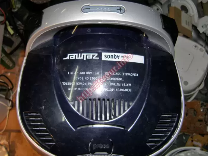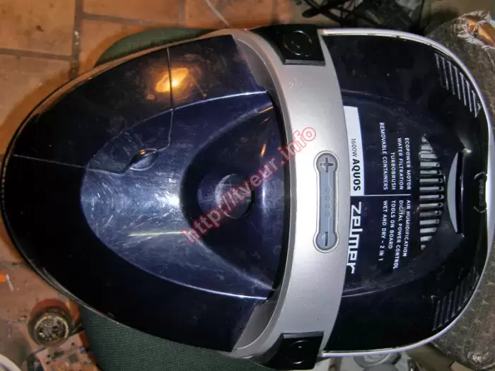 Пылесос с аквафильтром Zelmer ZVC722STUA (829.0ST) не работает, он не включается. Интересен тот факт, что мастерами нашего сервисного центра уже два раза выполнялся ремонт пылесосов по причине того, что был оборван шнур. В этот раз (третий) та же проблема, поскольку опять произошел обрыв сетевого шнура. Состояние этой бытовой техники удовлетворительное, устройство очень сильно запылено, в подшипниках слышен хруст. Данная модель с потребляемой мощностью 1600 Вт, объемом пылесборника 3 литра и расходом воздуха 30 литров в секунду. Имеется автоматическое сматывание шнура, а также регулировка мощности, которая выполняется на корпусе. У пылесоса горизонтальная парковка, в нем используется НЕРА и HEPA (моющийся) фильтры. Для правильного выполнения ремонта пылесосов необходима диагностика - у нас она бесплатная. Как показывает практика, такая неисправность, как эта случается по вине самих же пользователей. Они не правильно, не аккуратно обращаются с бытовой техникой. С такой неисправностью как в данном случае, ремонт состоял в восстановлении скользящей контактной группы, регулировке механизма сматывания шнура, после чего пылесос включается и работает нормально. Заказчик предупрежден о том, что в нем уже слышно, как хрустят подшипники. В дальнейшем за шнур не тянуть, в противном случае опять возникнет та же проблема.