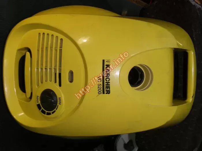Поскольку не включается пылесос для сухой уборки Karcher VC 5200, требуется срочный ремонт пылесоса в сервисном центре. Этот легкий и компактный пылесос максимально удобный не только в использовании, но в хранении. Благодаря тому, что он наделен фильтром HEPA 12 гарантируется максимальная гигиеничность и гипоаллергенность во время уборки. Скользящая насадка для пола бережно чистит ковровые покрытия. Пылесос с радиусом действия 8 метров, мощностью 1800 Вт и автоматическим сматыванием провода. Прежде чем выполнять ремонт пылесоса необходимо точно определить неисправность и в этом помогает предварительная диагностика. С ее помощью удалось установить, что проблема в сетевой катушке 6224-051 и держателе мешка, а именно, произошел обрыв сетевого шнура, сломан держатель держателя мешка, фильтры забиты пылью. В целом состояние пылесоса удовлетворительное, его корпус ярко желтого цвета без каких-либо механических повреждений. При этом немного грязноват (отлично видно на фото № 1). Внутри устройство также запылено, фильтры забиты. С такой неисправностью как эта, ремонт состоял в восстановлении сетевого подключения, также отреставрирован держатель мешка, заменены 2 клеммы. Для восстановительных работ использовали клей дихлорэтан. Выполнена общая чистка пылесоса. Такие действия позволили полностью решить проблему. При дальнейшей эксплуатации стараться за шнур сильно не тянуть, использовать пылесос строго по назначению, с периодичностью на ним ухаживать, своевременно фильтры очищать. Выполняя все эти рекомендации, пылесос еще сможет проработать длительное время.
