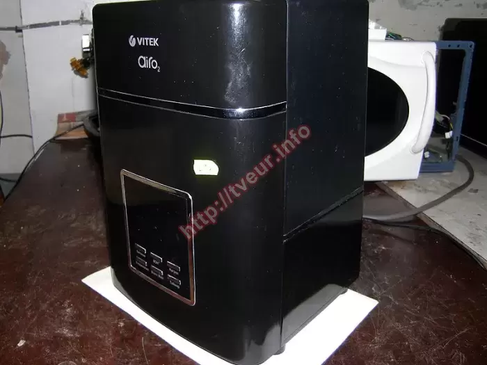 Vitek Airo 2 VT 1764 — это ультразвуковой увлажнитель с потребляемой мощностью 140 Вт, способный обслужить площадь 50 кв. м. Он с электронным типом управления. Устройство не включается, проблема состоит в модуле питания, внутри известковый налет. Ранее устройство вскрывали, но несмотря на это мы выполняем ремонт увлажнителей воздуха. Отреставрировали модуль питания, заменили многие пассивные элементы, включая R-0,5om2w, 4N60F, выполнили профилактику. Во избежание другого ремонта, пользователю рекомендовано использовать только фильтрованную воду.