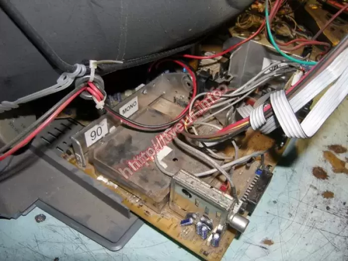 Устаревший ЭЛТ телевизор с экраном 54 см - Rainford СT2025 перестал включаться. Мы беремся за ремонт телевизоров с такой неисправностью, поэтому после диагностики установили, что из строя вышел модуль питания. Кроме того, его пытались ремонтировать, но безрезультатно, поскольку поставили бракованную MC 44604. В данном случае ремонт состоял в переборке всего блока питания, восстановлении монтажа, профилактике. Также заменили MC 44604P и много разных других деталей, в том числе R, С разные 4 шт., диоды- 3 шт. После ремонта телевизор включается, показывает хорошо.