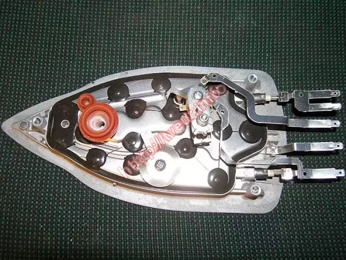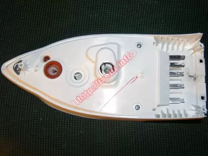 Утюг Philips GC2960 PowerLife с подачей пара 40 г/мин, паровым ударом 130г и мощностью 2400 Вт. Он не включается, выбивал пробки, пользователь его вскрыл, но разобраться не смог. Мы выполняем ремонт утюгов, поэтому он был взят в работу. После предварительного осмотра выяснили - на клеммах термостата нагар, на плате управления выгорели дорожки. Поскольку проблема в плате управления и подошве, пришлось заново напаивать дорожки на плате. После такого ремонта утюг работает хорошо. Пользователю рекомендовано использовать только фильтрованную воду, сетевой шнур не перекручивать.