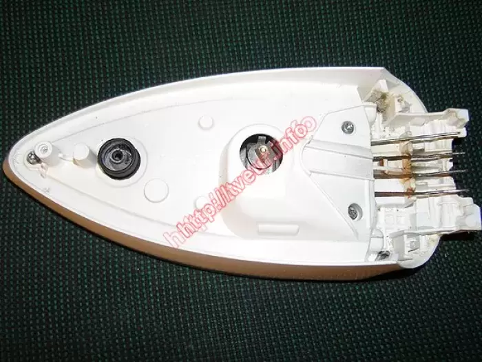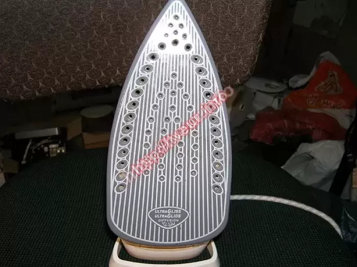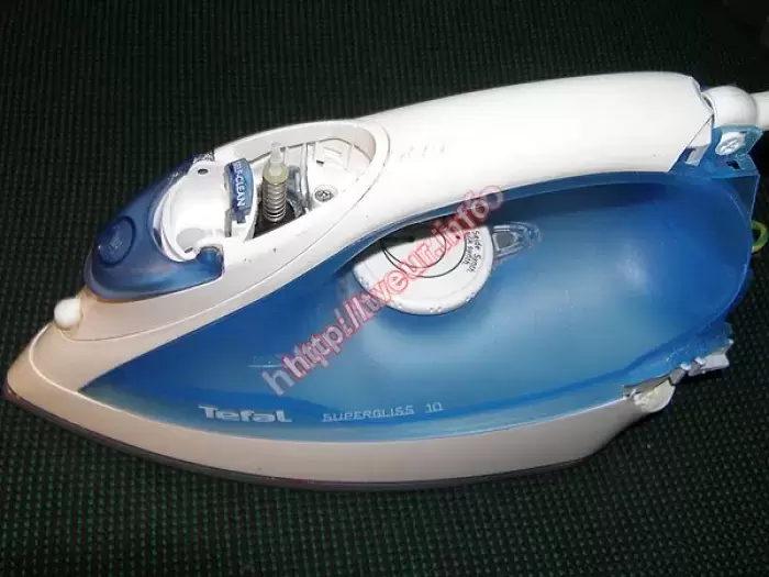 Утюг Tefal FV 3310 мощностью 2000 Вт, наделен емкостью для воды 250 мл, функцией самоочистки, противоизвестковым стержнем. Он не включается, подошва сильно запылена, в потеках, на терморегуляторе сгорели контакты, сетевые выводы ржавые, термосиликон потрескался, расплавился плавкий предохранитель.. С такой неисправностью, ремонт утюгов будет сложным. Восстановлена подошва, заменен терморегулятор 12а 250в, выполнена чистка внутри, профилактика. Использовали термосиликон. Во избежание ремонта в дальнейшем, рекомендовано использовать фильтрованную воду.