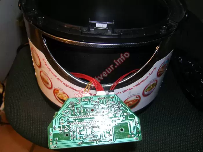 К нам в мастерскую поступила мультиварка Moulinex MK300E30, которую по неосторожности залили водой. Как результат она перестала работать, а именно, не включается. Мы стараемся никогда не отказывать своим заказчикам, поэтому взялись за ремонт мультиварок, который как показывает практика будет не простым. Эта кухонная бытовая техника с небольшой мощностью 450 Вт, дополнена пароваркой, у нее 8 автоматических программ приготовления, а объем чаши составляет 3 литра. Управлять устройством можно механически. К особенностям мультиварки можно отнести наличие таймера отсрочки приготовления до 15 часов, а также сохранение блюд горячими. После выполнения диагностики сделано заключение, что из-за попадания влаги прогнили провода в трансформаторах ТПИ, также залит дисковый нагреватель, на котором появились прогоревшие места (не критически). Кроме того, из строя вышла плата питания. Исходя из вышесказанного, ремонт мультиварок состоял в возобновлении работоспособности платы питания, на которой пришлось перепаивать некоторые компоненты, восстановлен монтаж. Также был заменен сетевой трансформатор 12в 350мАм. Это был достаточно сложный ремонт, для его выполнения пришлось практически полностью разбирать мультиварку (фото №4). На будущее, при приготовлении блюд нельзя допускать перелива жидкостей через край, об этом поставлен в известность пользователь, в противном случае данная бытовая техника выйдет из строя опять.