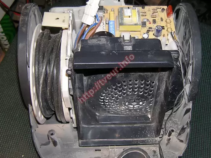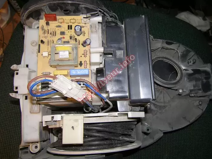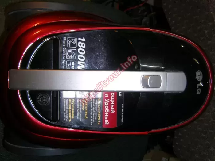 Пылесос без мешка контейнерного типа для сухой уборки LG VK71184HC (LG VK75302H) отказывается включаться, также не регулируются обороты. С такой проблемой он поступил в специализированный сервисный центр, чтобы наши мастера осуществили послегарантийный ремонт пылесосов. Это устройство с потребляемой мощностью 1800 Вт, объемом пылесборника 1.2 литра и длиной шнура 6 метров. У пылесоса горизонтальная парковка, имеется функция автоматического сматывания. Уровень шума составляет 78 дБ. Данная бытовая техника поступила в неудовлетворительном состоянии, она очень сильно запылена, от температуры покоробился корпус, оплавилось дно, выходной НЕРА фильтр отсутствует и крышки тоже нет. Но главная проблема состоит в том, что сгорел двигатель. С таким набором неисправностей ремонт пылесосов будет не только достаточно сложным, но и дорогим. С помощью диагностики установили, что проблема возникла в моторном отсеке. Помимо этого, из строя также вышла плата управления. Ее работоспособность удалось восстановить. Для этого пришлось перепаять некоторые детали. Выполнена чистка пылесоса. Дальнейший ремонт состоял в замене нового двигателя «LG» V1J-PY29-04, а также симистора BTA12 600. Пользователь поставлен в известность о том, что необходимо менять НЕРА фильтр.