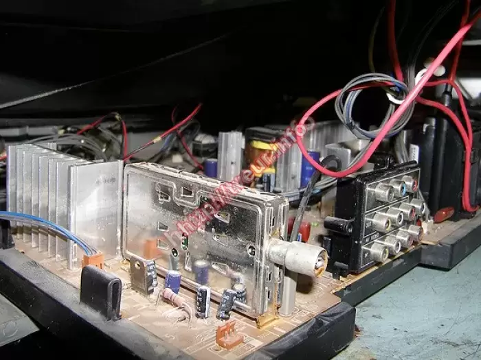Если Вы начали замечать посторонние звуки в ЭЛТ телевизоре, то лучше вызвать телемастера и выполнить ремонт телевизоров, а не ждать пока устройство задымит. Проблема может быть в блоке питания, строчной развертки, может даже и в пробоях платы.
