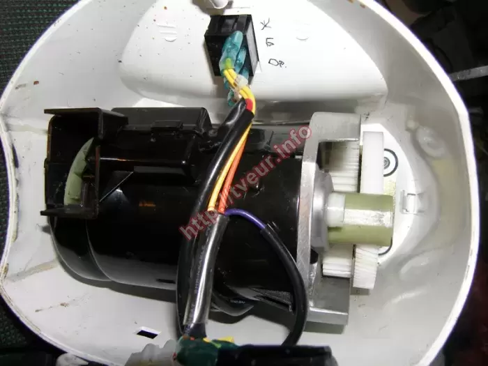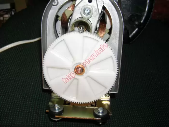 Такая неисправность, когда в электромясорубке появляется треск во время работы является очень распространенной и появляется, как правило, когда во внутрь попадают какие-то посторонние предметы (к примеру, железная ложка, вилка и т.д.). В данном случае требуется ремонт электромясорубок, именно по этой причине, поскольку модель Kenwood MG-450 плохо работает, во время работы слышен треск. Эта кухонная бытовая техника с максимальной мощностью 1400 Вт, она способна на одну минуту переработать 1.5 кг мяса. Одним из главных достоинств устройства является наличие функции «РЕВЕРС». К особенностям мясорубки следует отнести наличие цельнометаллического шнека, широкого резервуара для готовых продуктов, отсека для шнура, а также возможность хранения решеток и разных аксессуаров в корпусе. Она поступила в удовлетворительном состоянии, корпус прибора грязный (видно на фото № 2), стерлись зубья шестерни (фото № 4). При этом ремонт электромясорубок выполнялся в редукторе, который вышел из строя. Благодаря опыту мастера, неисправность была устранена. Для этого мясорубку пришлось практически полностью разбирать. Поскольку отреставрировать большую белую шестерню не возможно, она была заменена на новую. После ремонта мясорубка работает отлично, треск исчез. При дальнейшей эксплуатации не перегружать, следить за заточкой ножей.