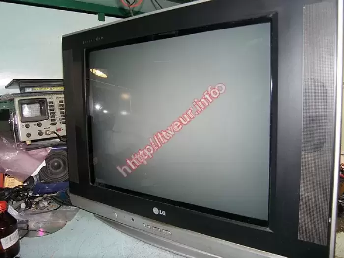 При включении телевизора мельком появляется зелёная полоса и потом экран светится как бы в стиле радуги и по краям пятна разноцветные. Stv9379 я купил. Схемы нет куда копать? Есть схема на lg 21fs7rg