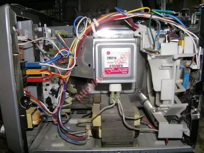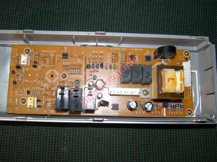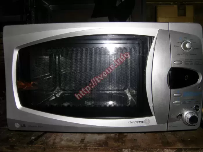 СВЧ печь LG MC-7682WS с конвекцией вышла из строя. По словам пользователя, который принес технику в нашу сервисную мастерскую, в ней плохо функционирует переключатель режимов, последний раз сильно нагрелась с гулом. Мы всегда выполняем ремонт микроволновых печей, поэтому взялись за ее восстановление. Эта модель с грилем и конвекцией, наделена мощностью 900 Вт и внутренним объемом 26 литров. В микроволновой печи используется магнетрон 2M214 39F, у нее электронный тип управления. Выполнив диагностику, мастер сделал заключение, что в микроволновой печи не переключаются режимы, то есть показания на дисплее не соответствуют выбору. В целом состояние устройства удовлетворительное. При этом, решетка вентилятора сильно запылена, N-кодер переключателя режимов потерял свои свойства. Помимо этого из строя вышла плата 6870W1A127A, работоспособность которой необходимо было возобновить. На ней были перепаяны некоторые детали. Кроме того, был полностью отреставрирован N-кодер переключателя режимов, произведена чистка. После правильно проведенного ремонта, эта СВЧ печь работает хорошо. Чтобы избегать подобного рода неисправностей, за микроволновой печью необходимо следить, после приготовления блюд — проветривать, внутри очищать от скопившегося жира.