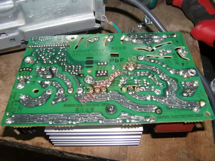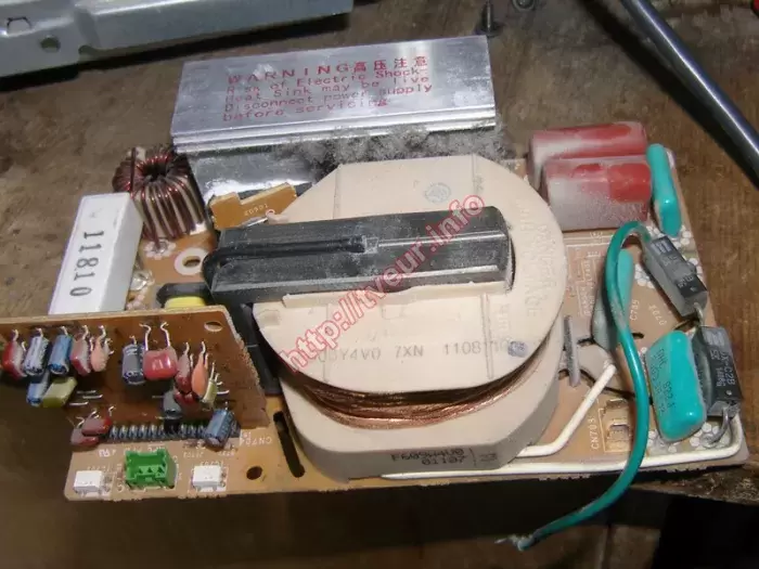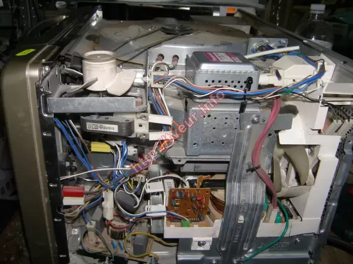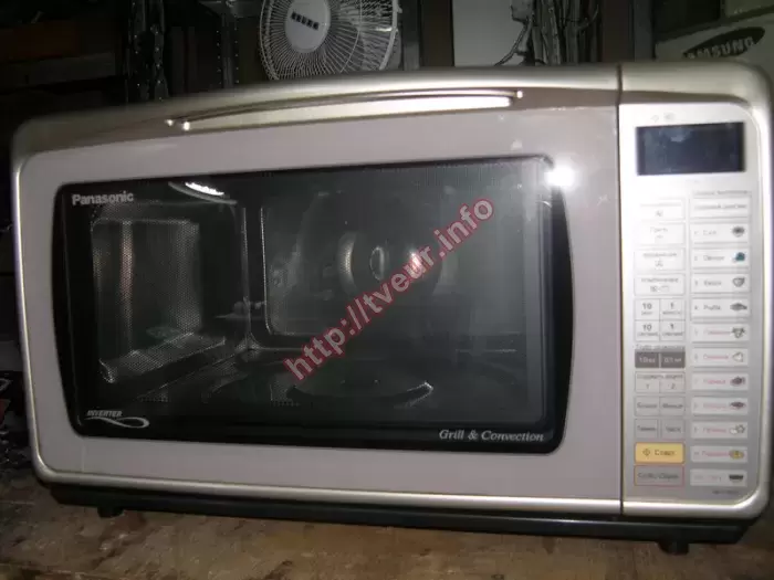 Поступившая в сервисный центр микроволновая печь с грилем и конвекцией Panasonic NN-C785JF с несколькими поломками одновременно. У нее нет нагрева в СВЧ, может чуть нагреть, а может выключиться во время работы. Со слов заказчика, во время работы слышен треск. Как показывает практика, цена ремонта микроволновой печи будет высокой, так как много разных неисправностей. Эта модель с хорошими техническими характеристиками, ее мощность 1000 Вт, а объем 28 литров. У нее имеется подсветка камеры, звуковой сигнал, блокировка от детей, четыре способа приготовления. В комплекте к микроволновой печи предусмотрена Книга рецептов на русском языке. Первое впечатление об устройстве хорошее, корпус и внутренняя духовка чистые, без механических повреждений. При этом, более тщательный осмотр показал, что в СВЧ печи недопустимо много собралось пыли, особенно в вентиляционной решетке. Запылены также все детали, включая инвертор и плату F6645-1U11. Предположительно по этой причине сильно перегревается магнетрон 2M236-M42. Кроме того, лопнули магниты, щетка очень сильно потемнела, слюдяная пластина скоро выйдет из строя (фото № 3). Все эти факторы повлияют на конечную цену восстановительных работ, которые состояли в ремонте ВВ цепей, чистке волновода. Заменены новый магнетрон и слюда, сделан ряд других профилактических работ. Клиента цена ремонта микроволновой печи полностью устроила. Мастер рекомендовал в дальнейшем не допускать такого скопления пыли, периодически ухаживать, после приготовления блюд, проветривать.