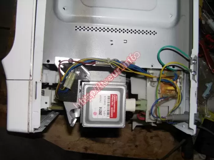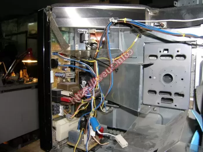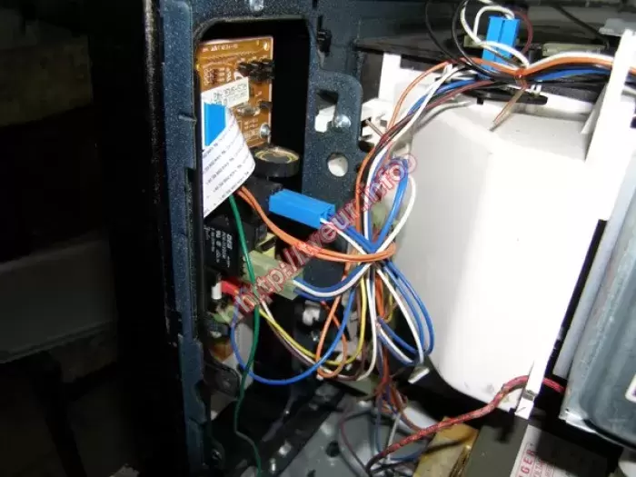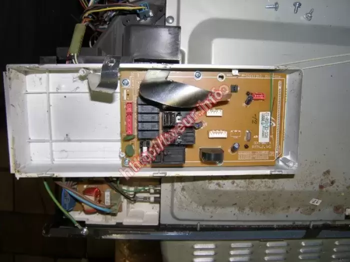 Не включается отдельно стоящая СВЧ печь с грилем Samsung CE2727R. Пользователь попросил, чтобы ремонт микроволновых печей был выполнен срочно. Данная модель с мощностью 850 Вт, объемом 20 литров и механическим управлением. Мастер узнал со слов пользователя, что внутри взорвалось яйцо, после этого печка не греет. Кроме того, внутри микроволновая печь очень грязная. Поскольку из строя вышла плата управления, работоспособность данного узла была полностью восстановлена. Помимо этого пришлось производить чистку, профилактику. Были заменены некоторые детали. Чтобы избежать ремонта в дальнейшем, заказчику дан ряд рекомендаций по правильной эксплуатации устройства, а также указано на то, что за СВЧ печью необходимо периодически ухаживать.
