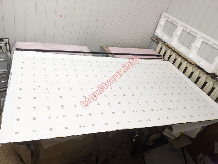 Телевизор был доставлен в заводской коробке, что обеспечило его полную сохранность при транспортировке. После включения специалисты зафиксировали серьезный дефект: правая половина экрана оказалась сильно затемнена. Спустя несколько минут работы устройство отключалось, при этом индикатор моргал шесть раз подряд. Чтобы определить причину и понять, как и где отремонтировать подсветку телевизора подобной диагонали наиболее грамотно, аппарат пришлось разобрать. Особенность конструкции модели в том, что задняя крышка выполнена из двух отдельных частей. После выкручивания крепежных винтов мастер снял нижний сегмент корпуса и получил доступ к ключевым узлам: материнской плате Main Board A2070627A, блоку питания 1-894-727-11, интерфейсным шлейфам, драйверам подсветки и другим элементам. На следующем этапе проведена проверка работы LED планок, замерено напряжение по линиям питания, протестированы цепи и драйверы. При разборке рамки обнаружен скол матрицы в нижнем правом углу, скорее всего, след от предыдущего вмешательства. Он не повлиял на диагностику, но отметил важность аккуратного ремонта. В данной модели система подсветки состоит из 20 вертикальных и 8 горизонтальных планок, каждая из которых тщательно проверена на предмет деградации светодиодов. Анализ показал, что локальная замена отдельных диодов возможна, однако нецелесообразна с экономической точки зрения и не гарантирует долгосрочной надежности. После обсуждения результатов диагностики с владельцем было принято решение выполнить более комплексный ремонт, который позволит восстановить нормальную работу телевизора без замены матрицы.