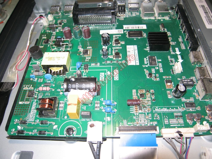 Общее состояние телевизора оставляет положительное впечатление: экран не имеет механических повреждений, корпус целый, а заводские маркировки и этикетки на задней панели четко читаются. При тестовом включении в сервисном центре проявилась проблема, о которой сообщил заказчик: изображение отсутствовало, экран оставался темным, хотя подсветка работала исправно. Кроме того, OSD (On Screen Display - сервисное экранное меню) не отображался, что является явным признаком неисправности основной управляющей электроники. Для точной диагностики телевизор был разобран. Конструкция задней панели в этой модели хорошо известна нашим специалистам: она состоит из двух частей, и для доступа к основной плате необходимо снять меньшую центральную крышку, открутив несколько винтов. На плате установлена моноплата MAIN TP.MS6486T.PB732 - универсальный управляющий модуль, который отвечает одновременно за обработку видеосигнала, работу процессора и декодеров, управление подсветкой, питание отдельных узлов и вывод изображения на экран. Углубленная проверка показала, что именно неисправность этой моноплаты стала причиной того, что телевизор перестал отображать картинку. При этом блок питания и подсветка функционировали корректно. Для восстановления работы платы на компонентном уровне необходимо заменить DC-DC контроллер ANX 6732A, микросхему, преобразующую напряжение и обеспечивающую стабильную работу процессора и видеотракта. Кроме того, для успешного ремонта ТВ потребуется перепайка нескольких пассивных элементов - диодов, резисторов и конденсаторов, которые во время диагностики показали отклонения от нормы или неполадки.