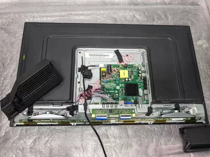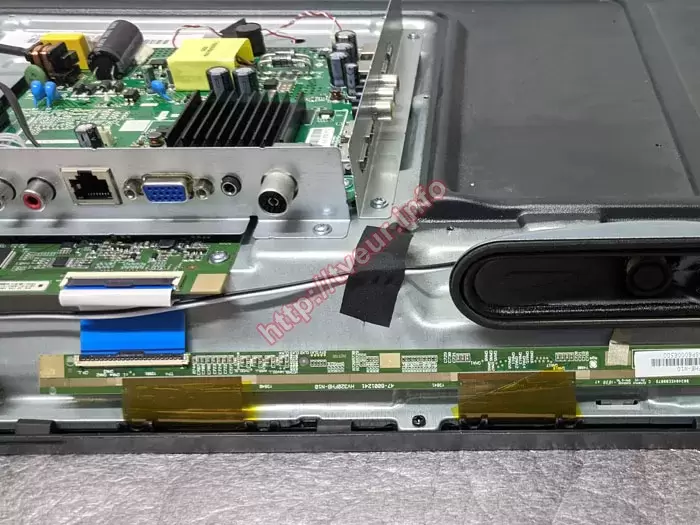При проведении первоначального осмотра телевизора было замечено, что его общее состояние достаточно хорошее, корпус аккуратен, а рамка и экран не имеют механических повреждений. Прежде чем выполнять любой сложности ремонт необходимо точно определить причину, по которой возникла неисправность. Разобрав телевизор, специалисты выяснили, что в данной модели применяется матрица HV320FHB-N10. В ходе углубленной диагностики стало понятно, что цена ремонта телевизора будет соответствующей, так как неисправна основная плата, если точнее - цепи питания T-CON.