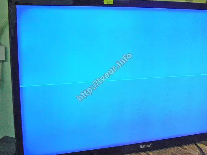 В LCD телевизоре (LED) Saturn LED32HD100U через всю 32-дюймовую матрицу появилась горизонтальная тонкая полоса (хорошо видно на фото № 2). С такой заявленной неисправностью этот телевизор, который собран в 2014 году, поступил в наш сервисный центр. В любом случае гарантированно потребуется ремонт матрицы горизонтальные полосы, которые, как показывает практика могут возникать по причине каких-либо механических воздействий, к примеру при транспортировке. Как утверждает заказчик, эта полоса, которая посередине экрана, периодически меняет свой цвет. При осмотре телевизора сделано заключение, что в целом его состояние хорошее, если не считать поврежденный левый верхний угол рамки, на которой сильные потертости, слезла краска. Возможно телевизор протащили по какой-то шершавой поверхности или повредили каким-то другим способом. Предположительно это и стало причиной того, что ремонт матрицы горизонтальные полосы станет неизбежным. Данная модель со встроенным медиаплеером, который поддерживает широкий ассортимент форматов. У него неплохие углы обзора 176/176 градусов, он наделен тремя разъемами HDMI, одним USB и другими. Для выполнения ремонта, телевизор пришлось полностью разбирать, он состоял в замене некоторых элементов матрицы, восстановить работу которых не возможно. В результате полоса пропала, картинка на экране качественная. Рекомендуем более аккуратно обращаться с телевизором.