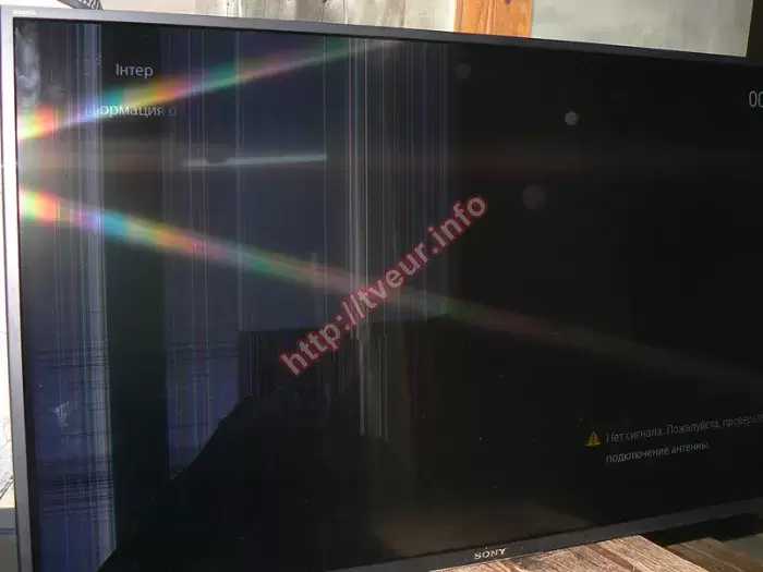 43-дюймовый телевизор с функцией Smart TV - Sony KD-43XE7096BR, который собран в Японии в июле 2017 года, поступил в сервисный центр из города Никополь с очень сильно поврежденной LED матрицей. Заказчик попросил, чтобы замена матрицы в телевизоре Sony была сделана в самые короткие сроки. По телефону он сообщил, что проблема произошла рано утром, когда он собирался уходить на работу, чисто случайно задел экран, при этом телевизор был выключенным. Он вообще не обратил на этот момент внимание, не думая о том, что могут быть такие негативные последствия. Вечером, придя с работы, он как обычно включил телевизор, но что-то пошло не так, он увидел мгновенную вспышку и трещины на матрице. Он сразу выключил устройство и стал искать пути решения проблемы. Отыскав в Интернете наш сервисный центр, он позвонил, узнал все нюансы и отправил телевизор на ремонт. Телемастер осмотрев матрицу сделал заключение, что удар пришелся чуть левее логотипа. От этого места во все стороны пошли тонкие, прозрачные трещины. Часть левого угла серого цвета, здесь скопление полос, как вертикальных, так и горизонтальных. Остальная матрица Sony залита черным цветом, на ней отчетливо просматривается тонкая белая горизонтальная полоса (хорошо видно на фото № 3). В правом нижнем и в верхнем левом углах остались светиться заставки. Замена матрицы в телевизоре Sony стала возможной после того, как нам удалось заказать и купить идентичную по параметрам новую панель. Только потом была демонтирована матрица с множеством дефектов, а на ее место установлена новая. На этот ремонт (замена экрана) + деталь выдана гарантия.