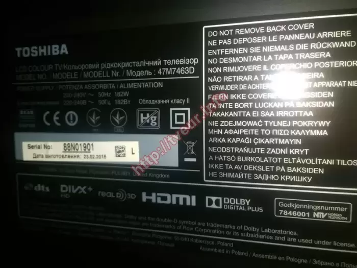 Пользователь 3D-телевизора Toshiba 47M7463 обратился в сервисный центр, так как требуется срочная замена матрицы ЛЕД телевизора, которая по неосторожности была разбита. Как показывает практика, такой ремонт является сложным процессом по самым разным причинам, одна из которых, достаточно большая диагональ, а именно, 47-дюймов. Данная модель, которая изготовлена в 2015 году, наделена такими функциями, как LED-подсветка, Smart TV и Wi-Fi. Кроме того, телевизор с высоким уровнем контрастности 1600:1 (динамическая 7000000:1), уровнем отклика 5 мс и углом обзора 178º / 178º. Производитель снабдил этот телевизор большим набором портов и разъемов, в число которых входят четыре HDMI, два USB и другие. В данном случае замены матрицы ЛЕД телевизора не избежать, поскольку она разбита, на ней есть трещины. Несмотря на то, что они достаточно короткие, телевизор не пригоден к дальнейшей эксплуатации. Более того, замена матрицы ЛЕД телевизора нужна еще и потому, что по ней много разноцветных полос - вертикальных и горизонтальных. Визуально экран как бы разделен на две половины, нижняя его часть серого цвета, а верхняя - синего. Все эти «симптомы» говорят о том, что ремонт будет состоять в демонтаже испорченного экрана, на место которого будет установлен новый. Такой ремонт, как замена матрицы любого ЛЕД телевизора в городе Киеве должен выполняться опытными телемастерами с использованием специального оборудования. В данном случае все работы были результативными. Выполнены настройки телевизора. На работу и новую деталь выдана гарантия.