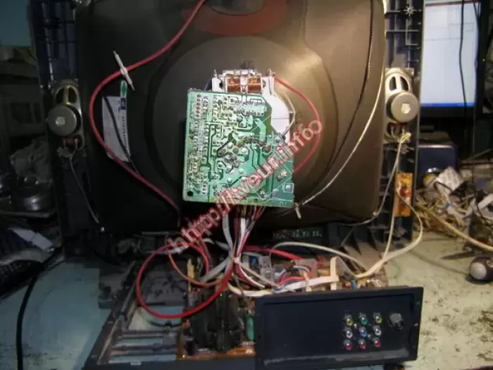 После 2-3 раз включения/выключения кинескопного телевизора, он перестал включатся совсем. Подобная проблема наблюдалась в телевизоре Sharp 21SFX10u. Ремонт телевизоров будет состоять в замене некоторых деталей в модуле питания.