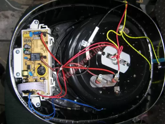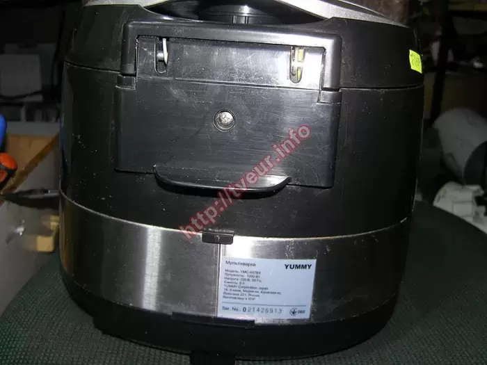 Мультиварка YUMMY YMC-507BX перестала включаться после того, как ее залили водой. Такие действия вывели ее из строя, поэтому ремонт мультиварок в сервисном центре станет неизбежным. Данная ситуация осложнена еще и тем, что на плате питания образовались окислы. Кроме того, предварительный осмотр показал, что дисковый нагреватель в нагаре (отлично видно на фото № 2), есть сухие пайки. В целом состояние данной бытовой техники удовлетворительное, она немного грязная как внутри, так и снаружи. В этой мультиварке применены самые прогрессивные технологии, она создана из качественных материалов. Устройство с 3D-нагревом и керамическим антипригарным покрытием. Благодаря понятному сенсорному управлению в сочетании с LCD экраном, максимально упрощается выбор из наличия двадцати двух автоматических и еще тридцати ручных программ. Пользователь имеет возможность задавать время таймеру. А также изменять параметры во время работы прибора. Чтобы выполнить ремонт мультиварок, ее пришлось полностью разбирать (фото № 4). В результате пришлось восстанавливать вторичные источники питания, на плате перепаивать некоторые компоненты. Неисправность устранена, но чтобы в дальнейшем опять не потребовался ремонт, стараться не допускать попадания никакой жидкости на дисковый нагреватель!