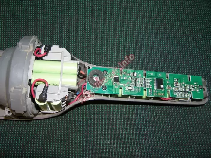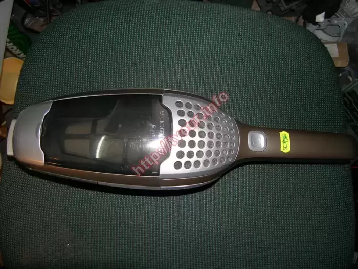 Через 3-4 секунды отключается аккумуляторный ручной пылесос/электровеник ElectroLux ZB 2901, кроме того, нет заряда. Мы выполняем ремонт пылесосов любых типов, поэтому взялись за его восстановление. Эта модель без регулировки мощности, предназначена для выполнения сухой уборки продолжительностью 20 минут при полном заряде аккумуляторов. Пылесос наделен системой быстрой очистки фильтра, подсветкой щетки, у него моющийся тип фильтра. После предварительного осмотра стало понятно, что устройство очень сильно запылено (отлично видно на фото № 6), аккумуляторы потеряли емкость. Более тщательная диагностика подтвердила, что проблема возникла в нескольких узлах одновременно, а именно, в батарейном отсеке, плате управления и двигателе. Cоответственно ремонт пылесосов был направлен на возобновление их работоспособности. Выполнена переупаковка и замена аккумуляторов 1.2в 1300ма (всего 10 штук), чистка, ремонт цепи заряда. Перепаяны некоторые компоненты. После ремонта этот электровеник работает хорошо. Пользователь предупрежден о том, что данной бытовой техникой нельзя убирать строительный мусор, включая цемент. Это связано с тем, что если из строя опять выйдет двигатель, который в этот раз удалось восстановить, придется его менять, что сделать будет крайне сложно.