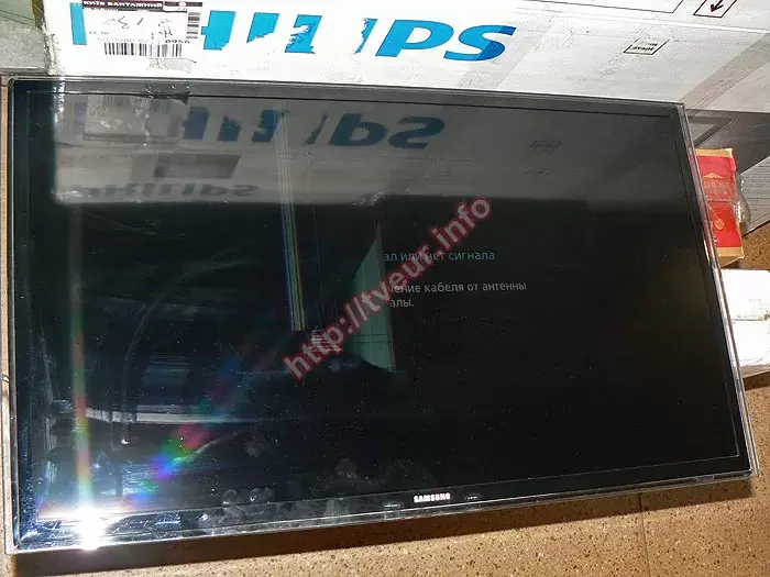 В телевизоре Samsung UE32F6800AB по неосторожности разбили экран, на котором вместо изображения различные механические повреждения. Поскольку данная модель телевизора относится к достаточно редким, заказчик из г. Дружковка (Донецкая область) по телефону согласовал, как быстро может быть выполнена замена ЖК экрана телевизора Самсунг. Обсудив все нюансы, он принял решение выполнять ремонт, выслав к нам телевизор, упакованным в оригинальную коробку.