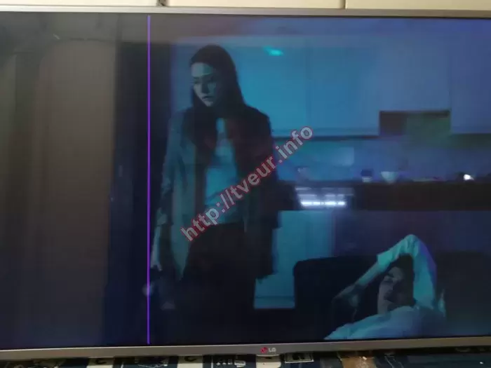 При включении телевизора в мастерской выяснили, что на изображении видна пиксельная вертикальная линия синего цвета, которая расположена недалеко от левой боковой рамки. Для выполнения углубленной диагностики телевизор полностью разобрали. В ходе ее выполнения выяснили, что ремонт матриц телевизоров неизбежен, поскольку проблема именно в ней, так как из строя полностью вышел ее драйвер. Этот неисправный элемент матрицы не возможно восстановить на компонентном уровне, поэтому возможна только его замена. Несмотря на то, что это повлияет на конечную стоимость ремонта, заказчик полностью согласен с выполнением такой сложности ремонта матрицы телевизора.