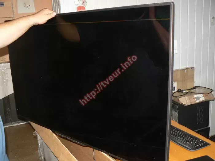 В телевизоре Philips 55PFL8007T, который доставили в наш сервисный центр достаточно сложная неисправность. А именно, со слов заказчика, на экране при включении видны горизонтальные линии разной ширины. Более того, они появляются в разное время, но изображение и меню при этом практически не просматривается. Судя по «симптомам» предположительно потребуется ремонт матрицы ЖК телевизора, что должно быть подтверждено выполненной диагностикой. Заказчик не знает, почему возникла неисправность, поскольку вечером, когда включили телевизор, изображение отсутствовало и были видны темные полосы.