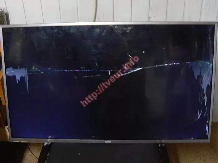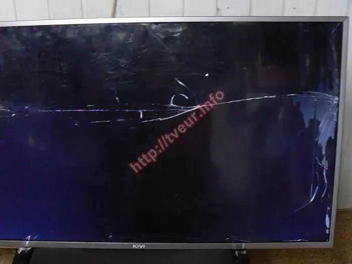 В наш сервисный центр из города Изяслав Хмельницкой области поступил телевизор Kivi 40UR50GU, у которого разбита 40-дюймовая матрица. Заказчик, узнав, что у нас можно выполнить такой ремонт, как замена экрана LED телевизора, решил обратиться за помощью. По телефону от него узнали, что в своем городе он посетил несколько мастерских, при этом там ему отказали, ссылаясь на сложность ремонта и невозможность приобретения нового идентичного экрана. Также он сообщил, что матрицу разбили дети во время игры, бросив в нее какую-то игрушку, которая попала возле правой рамки. Изображение на экране сразу же исчезло (телевизор был во включенном состоянии), при этом появились разного рода механические дефекты, соответственно телевизор стал не пригодным к использованию. Заказчику важно, чтобы была выполнена именно замена экрана LED телевизора, так как он приобретен не так давно, при этом наделен именно теми функциями, которые используются. Мы никогда не отказываем своим клиентам, не зависимо от того, в каком регионе Украины они проживают или какой диагонали матрица разбита, поэтому взялись за восстановление этого телевизора.