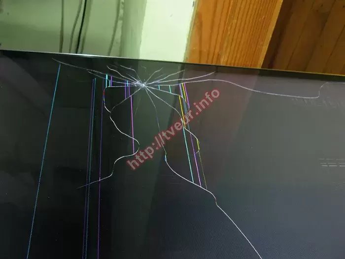 Когда в ТВ, независимо от модели или производителя разбит экран, на нем появились трещины, сколы, или под него затекла вода, гарантированно потребуется замена матрицы телевизора, и данный случай не исключение. Именно с такой проблемой к нам в мастерскую был доставлен 3D телевизор с LED подсветкой LG 55LB730V, у которого разбит большой 55-дюймовый экран. Эта современная модель 2015 года выпуска (производство Россия) наделена самыми прогрессивными технологиями и функциями, с помощью которых пользователь имеет возможность окунуться в неповторимый мир телевидения, с непревзойденным качеством изображения, которое достигается благодаря точной цветопередаче и четкости картинки. Этот телевизор с углом обзора 178°/178°, наделен двумя ТВ-тюнерами (аналоговым + цифровым). Как объяснил на приемке заказчик, по матрице нечаянно ударили во время проведения торжества, когда были гости. В результате от того места, куда пришелся удар (возле верхней рамки, посередине), во все стороны по экрану пошли трещины. Сам он весь залит черным цветом, только в некоторых местах видны вертикальные разноцветные полоски. С такой проблемой ремонт может состоять только в замене экрана, который обойдется пользователю достаточно дорого. Со всеми условиями он согласился, поэтому была заказана и заменена новая 55” матрица. После вышеописанных работ, телемастер выполнил все настройки. Чтобы избежать подобного ремонта в будущем, пользователю дан ряд рекомендаций по правильной эксплуатации телевизора.