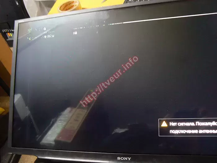 Когда телевизор включили непосредственно в сервисном центре, стало понятно, что на экране с левой стороны появились тонкие вертикальные цветные полосы. Вместе с этим горизонтальная полоса белого цвета вдоль верхней рамки, которая ближе к левой стороне начинает переходить в пунктирную. В верхнем левом углу осталась видна часть заставки, которая состоит из цветных пунктирных линий. В правом нижнем углу осталась светиться заставка «Нет сигнала. Пожалуйста, проверьте подключение антенны», которая двоится. В первую очередь телевизор полностью разобрали и провели диагностику, которая показала, что ремонт полос на телевизоре неизбежен. Более того, он будет сложным и достаточно дорогостоящим, так как неисправны элементы матрицы, не подлежащие восстановлению, поэтому единственным результативным решением является их замена.