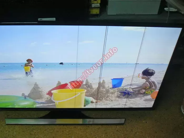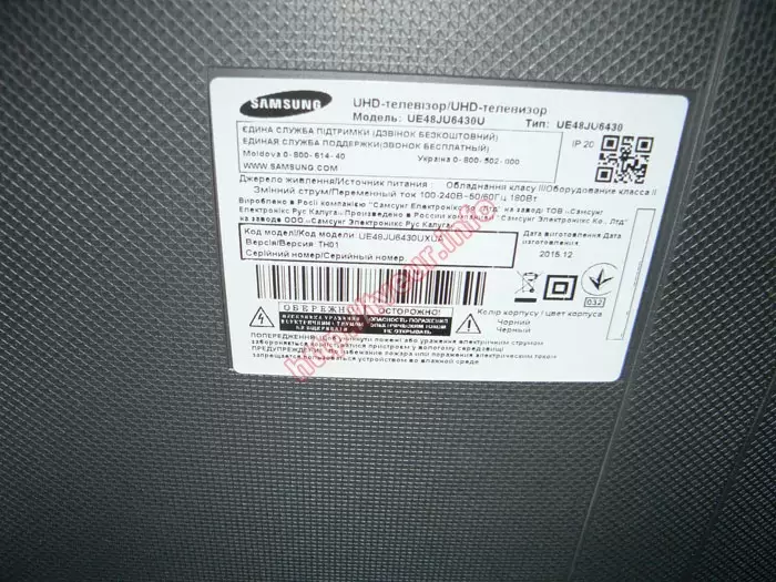Телевизор Samsung UE48JU6430 поступил в нашу сервисную мастерскую из г. Краматорск, запакованным в родную коробку. Заявленная неисправность - из-за залития водой на экране появилось несколько достаточно тонких полос, которые очень мешают просмотру. Данные «симптомы» указывают на то, что быстрее всего потребуется ремонт залитой матрицы, который как правило, сложный и дорогостоящий. От заказчика также узнали, что экран телевизора протерли слишком мокрой губкой и по всей видимости влага могла попасть под матрицу. Именно после этого, когда включили телевизор то увидели, что на экране несколько вертикальных полос. Мы всегда принимаем в ремонт неисправные телевизоры со всех регионов Украины, поэтому приняли его в работу.