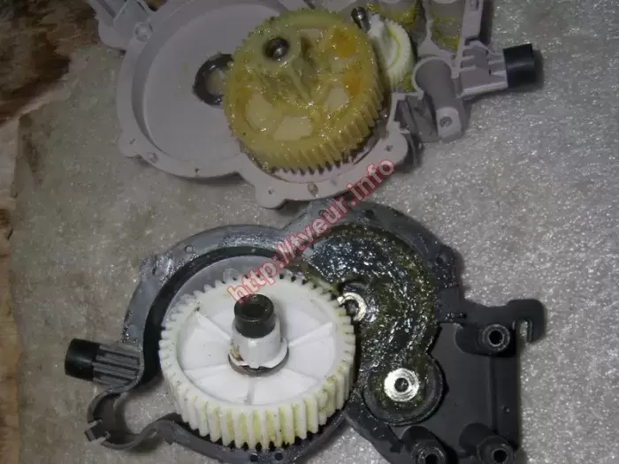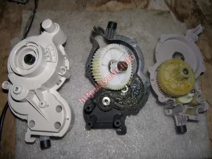 Когда с кухонной бытовой техникой не аккуратно не правильно обращаются, в результате это приводит к тому, что ремонт электромясорубок станет неизбежным. Данный пример не исключение, поскольку в электромясорубке Moulinex HV8 ME 657 появился треск при работе после того, как по неосторожности в тубус попал какой-то железный предмет (предположительно ложка). В результате сломаны зубья двух шестерен (можно посмотреть на фото № 2). Кроме того, из строя вышел редуктор. Данная модель с высокой мощностью 2000 Вт, готова переработать до 2 кг мяса за одну минуту. Для максимально простой и удобной работы с мясорубкой предусмотрена функция «Реверс». В данном режиме шнек прокручивается в обратную сторону, чем помогает извлечь кусочки мяса, которые застряли. Диагностика показала, что главная проблема состоит в редукторе, восстановить работоспособность которого не возможно. Исходя из этого, ремонт электромясорубок состоял в замене нового редуктора в сборе (отлично видно на фото № 3), который пришлось заказывать. Для выполнения ремонта, устройство практически полностью разбиралось и после замены новой детали, собиралось обратно. В дальнейшем при использовании этой электромясорубки, стараться ее не перегружать, а также следить за тем, чтобы в шнек не попадали посторонние предметы.