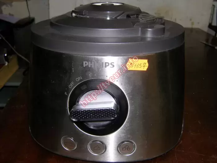 В кухонном комбайне Philips HR7778/00 появился запах горелого. Как объяснил пользователь, которому нужно, чтобы был выполнен ремонт кухонных комбайнов, сначала пошел запах, потом появился дым. Он сразу отключил устройство и больше его не включал. Данная модель из коллекции Philips Avance, станет отличным решением для любой современной кухни, поскольку наделена такими основными насадками, как блендер, крюки для теста, соковыжималка для цитрусовых и соковыжималка центробежная. Мощность прибора 1300 Вт, объем чаши составляет 3.4 литра, а объем блендера 1.5 литра. Эта бытовая кухонная техника наделена 12 скоростями и широким набором различных дополнительных насадок. Во время выполненной диагностики было точно установлено, что сам комбайн полностью в рабочем состоянии. Более того, его общее состояние хорошее. При этом заклинило ножи (видно оплавленную пластмассу) в насадке блендера. Наши мастера берутся за ремонт бытовой техники, не зависимо от сложности неисправности, поскольку имеют для этого большой опыт работы, а также соответствующие условия. Как оказалось, из строя вышли ножи блендера, которые не подлежали восстановлению. По этой причине пришлось заказывать и менять новые ножи. Такие правильные действия вернули устройству полную работоспособность. Теперь при работе запах горелого не слышен. В дальнейшем использовать комбайн максимально бережно!