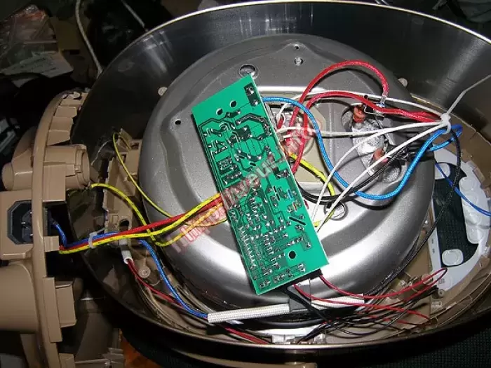Закончилась вода во время варки на пару и термозащита не сработала, появился запах горелого. Поломка была обнаружена в дисковом нагревателе и плате управления. Ремонт мультиварок состоял в замене термопредохранителя 184*10А 250В.