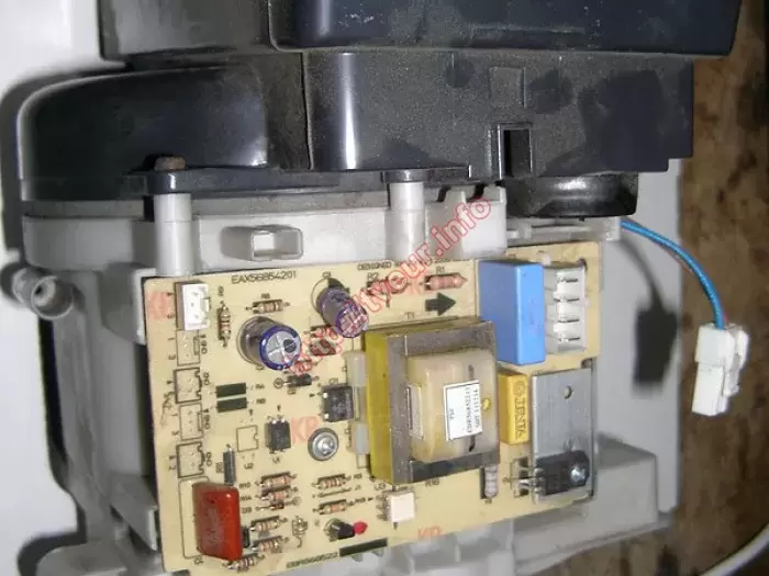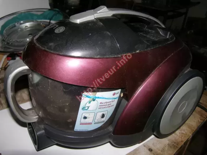 В пылесосе для сухой уборки контейнерного типа LG VK71184HC появился запах при работе. По этой причине пользователь обратился в наш сервисный центр, где можно выполнить самый сложный ремонт пылесосов, не зависимо от типа или модели. Эта бытовая техника с потребляемой мощностью 1800 Вт и мощностью всасывания 380 Вт. У пылесоса универсальная парковка, имеется автоматическое сматывание шнура. Уровень шума составляет 78 дБ. После предварительного осмотра стало ясно, что устройство очень сильно запылено, сильно искрят роторные катушки (сварка), фильтры забиты. Такие симптомы говорят о том, что с пылесосом не правильно обращались, не проводилась его своевременная чистка. В данной модели используется плата EAX56854201 и двигатель LG V1J-PY29-04. В ходе выполненной диагностики сделано заключение, что проблема состоит в моторном и предмоторном отсеках. Кроме того, из строя вышел двигатель, который восстановлению не подлежит. В данном случае ремонт пылесосов состоял в замене нового двигателя «WHICEPART» VC07W16-SX, который пришлось заказывать. Помимо этого, выполнена чистка входных фильтров, а также ряд других работ. Это был сложный и дорогостоящий ремонт, при этом теперь пылесос полностью в рабочем состоянии. Дальше использовать пылесос по назначению, цемент и строительный мусор не убирать, выходной НЕРА фильтр желательно заменить, входные фильтры периодически очищать.